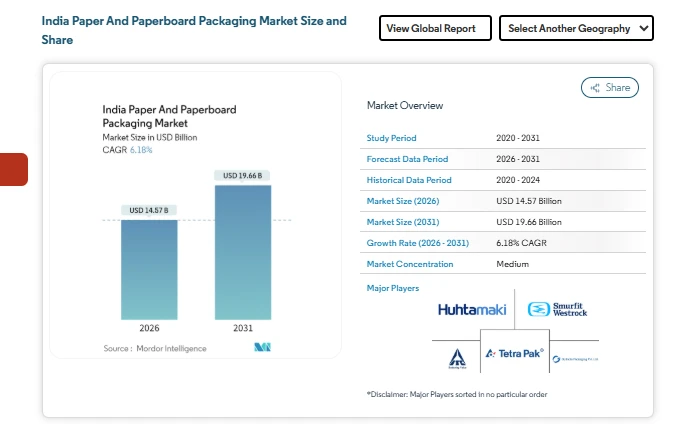 The India paper and paperboard packaging market is expected to maintain steady progress due to strong demand from e-commerce, retail, food, and healthcare sectors. The shift away from plastic packaging and increasing focus on recyclable materials are supporting long-term demand.