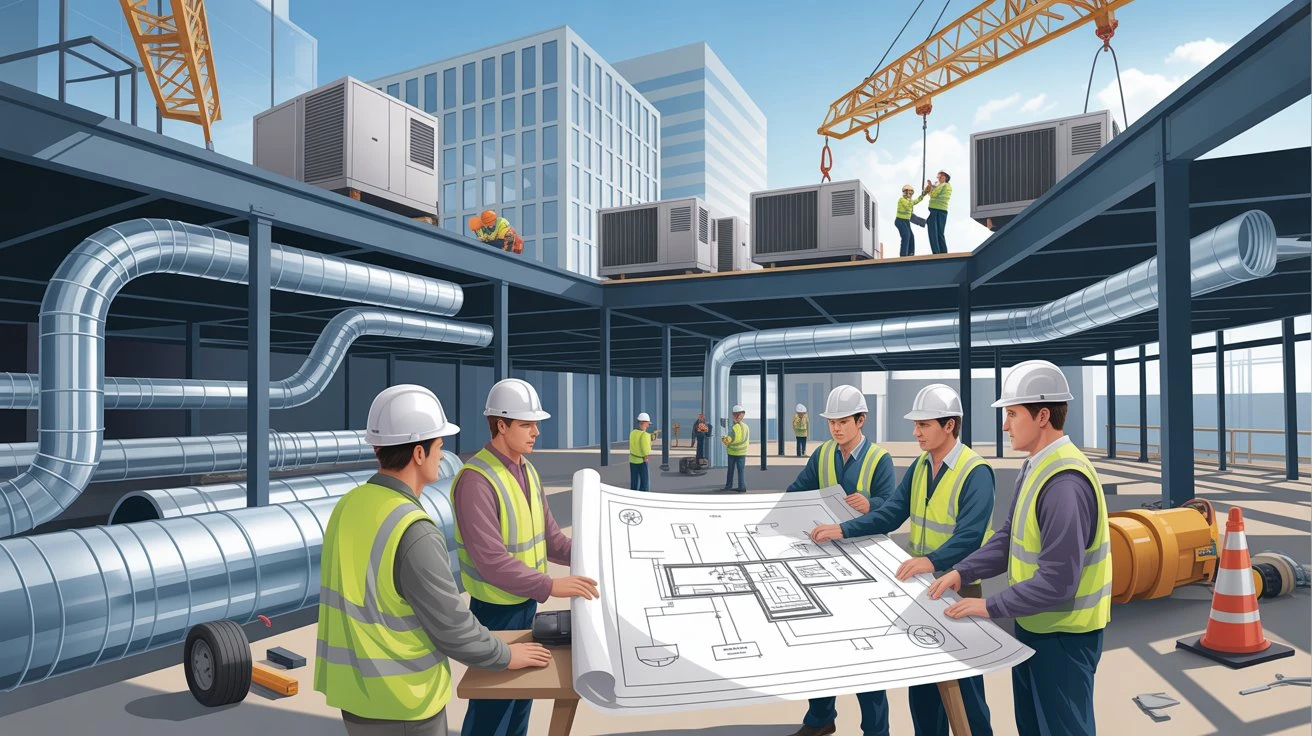 The construction of an HVAC system in a commercial building is a multi-stage endeavour organised in a technical manner and needs coordination and scrutiny. Since the initial planning and design to the ultimate commissioning and handover, every stage is an essential part in the performance of the system and the success of the building.