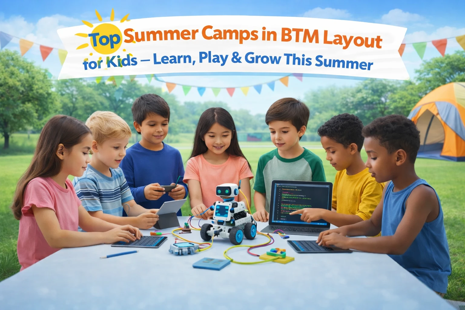 Looking for a productive and fun way to spend the holidays? The Best Summer Camps in BTM Layout offer an exciting environment where kids can learn, explore, and enjoy their summer to the fullest. These camps include a wide range of activities such as basic coding, robotics, art & craft, storytelling, music, dance, indoor games, and creative workshops. Through hands-on sessions, children improve problem-solving skills, logical thinking, communication, and teamwork while having fun with kids their own age. Designed especially for children between 6 and 16 years, these summer camps focus on overall personality development in a safe and engaging setting. Parents love these programs because they keep kids active, boost confidence, and encourage creativity beyond screens. Enrolling in the best summer camps in BTM Layout ensures your child returns to school with new skills, happy memories, and renewed energy — making summer truly meaningful and memorable.