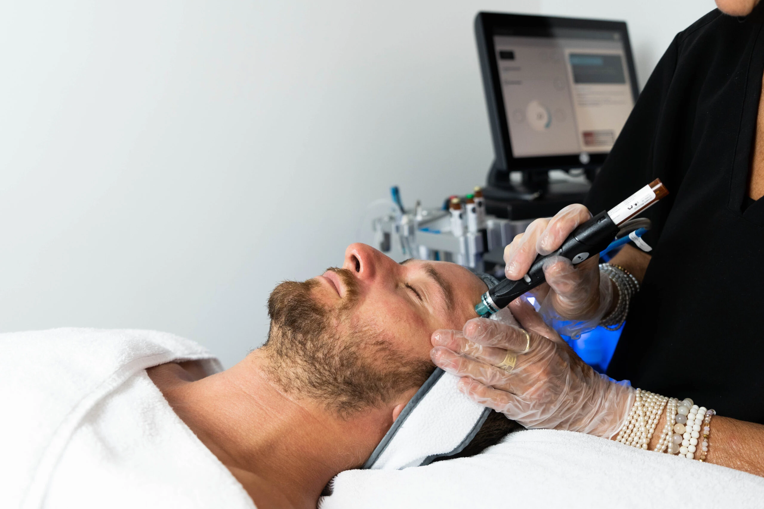The technology relies on a patented device that uses Vortex-Fusion technology to draw out impurities from pores while simultaneously infusing nourishing serums rich in antioxidants, peptides, and hyaluronic acid.