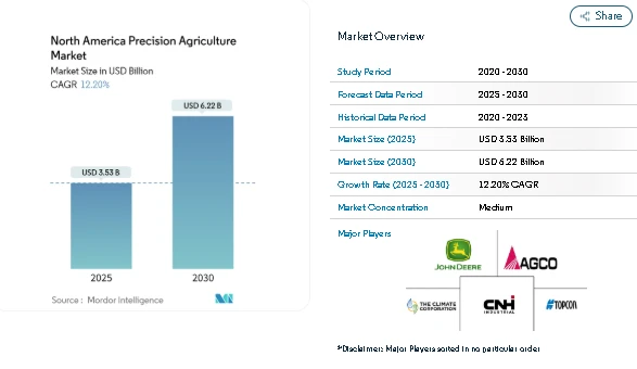 The North America Precision Agriculture Market is increasingly shaping modern farming practices in the United States, Canada, and Mexico. Valued at USD 3.53 billion in 2025, the market is expected to grow to USD 6.22 billion by 2030, reflecting steady expansion as farmers address rising operational costs and labor shortages.