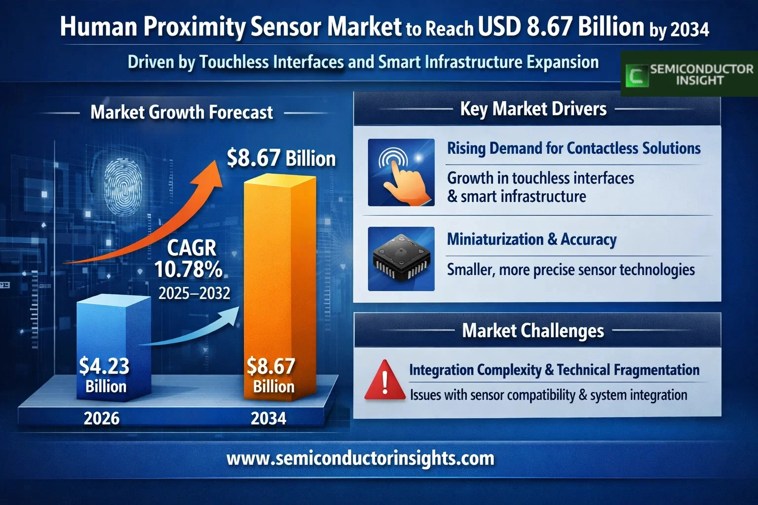 Global Human Proximity Sensor Market was valued at USD 4,230 million in 2026 and is projected to reach USD 8,670 million by 2034, registering a CAGR of 10.78% during the forecast period 2025–2032. Market expansion is being fueled by accelerating adoption of contactless technologies, rising smart infrastructure investments, and increased deployment of automated security and control systems across commercial and industrial environments.