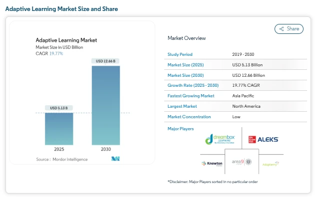 The adaptive learning construction market is gaining steady attention as education systems and enterprises move toward personalized digital instruction models. According to Mordor Intelligence, the adaptive learning market size stood at USD 5.13 billion in 2025 and is forecast to reach USD 12.66 billion by 2030, expanding at a CAGR of 19.77%. In 2026, the market size is expected to continue its upward trajectory as institutions scale AI-enabled learning platforms across regions.