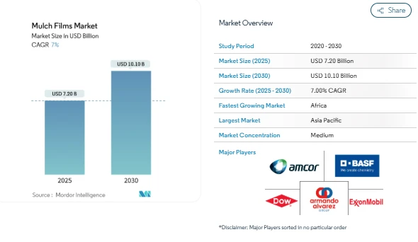 The global Mulch Films Market is witnessing steady growth as farmers adopt advanced cultivation methods to enhance crop yield, water efficiency, and soil health. From conventional plastic films to fully biodegradable solutions, mulch films have become a key component in modern agriculture. The market is expected to grow at a 7.0% CAGR, reaching USD 10.1 billion by 2030, up from USD 7.2 billion in 2025.
