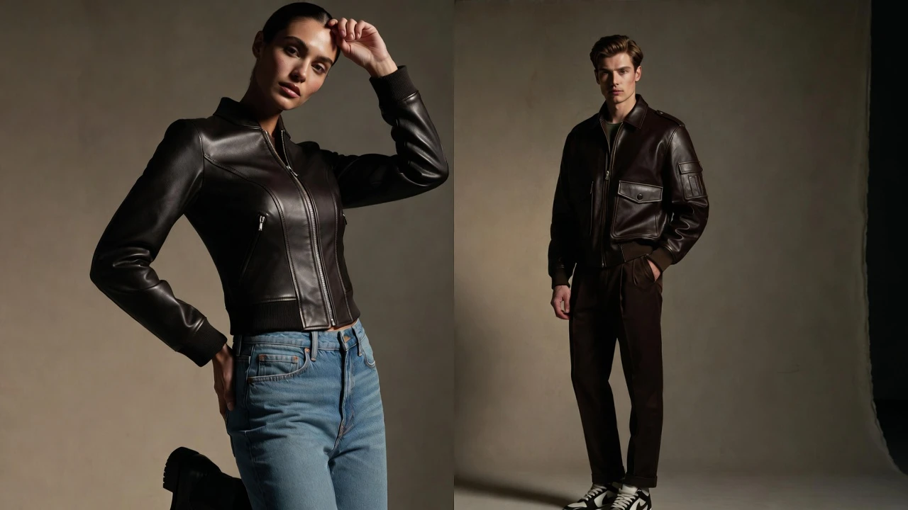 This guide breaks down everything you need to know about choosing the right Womens real leather bomber jacket and Mens real leather bomber jacket, from leather types and fit to styling and quality checks.