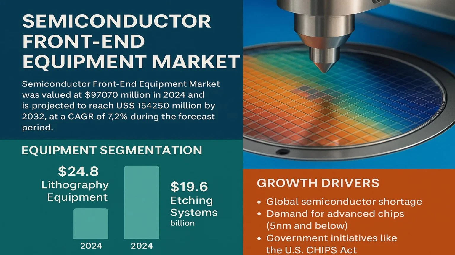 Global Semiconductor Front-End Equipment Market was valued at USD 97,070 million in 2024 and is projected to reach USD 175 billion by 2034, at a CAGR of 6.1% during the forecast period 2026-2034. Massive expansion reflects unprecedented wafer fab construction for A16/1nm logic nodes and HBM4 memory capacity supporting exaflop-scale AI training clusters.