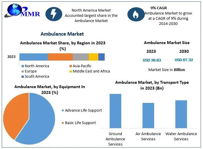 The global Ambulance Market Outlook is experiencing significant growth, with projections estimating a market size of $67.32 billion by 2030, reflecting a compound annual growth rate (CAGR) of 9% from 2024 to 2030. This growth is primarily driven by the increasing global population, the rising prevalence of chronic diseases, and the growing need for emergency medical services worldwide.
