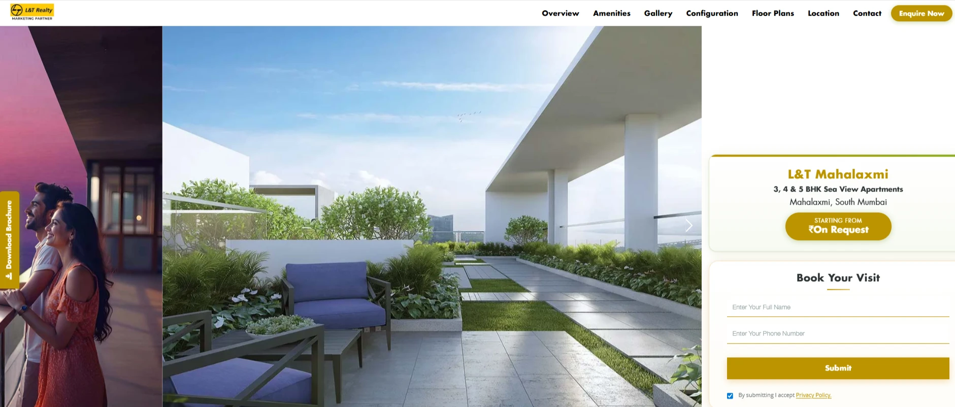 L&T Realty developed L&T Mahalaxmi Mumbai which stands as one of the most awaited ultra-luxury residential developments in the entire city. The project includes large residential units which consist of 3 BHK, 4 BHK, and 5 BHK designs that create optimal daylight entry and cross air movement and continuous sea and skyline views. The apartments at LnT Mahalaxmi Mumbai create an atmosphere which combines elegance with private space through sophisticated design making it an ideal residence for contemporary families and real estate buyers.