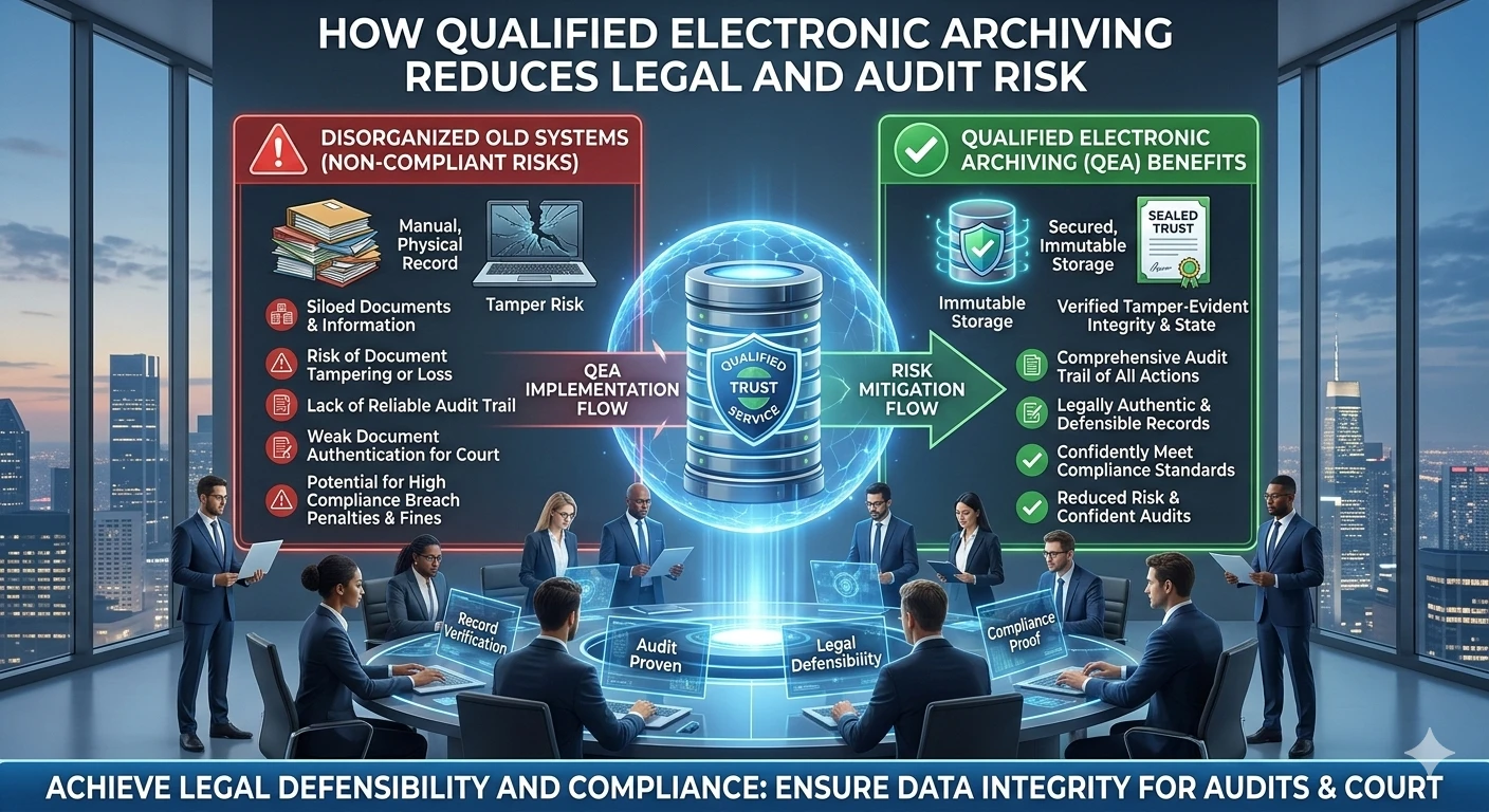 In simple terms, Qualified Electronic Archiving transforms records from vulnerable assets into legally defensible resources. That transformation reduces exposure across litigation, compliance reviews, and operational disruptions.