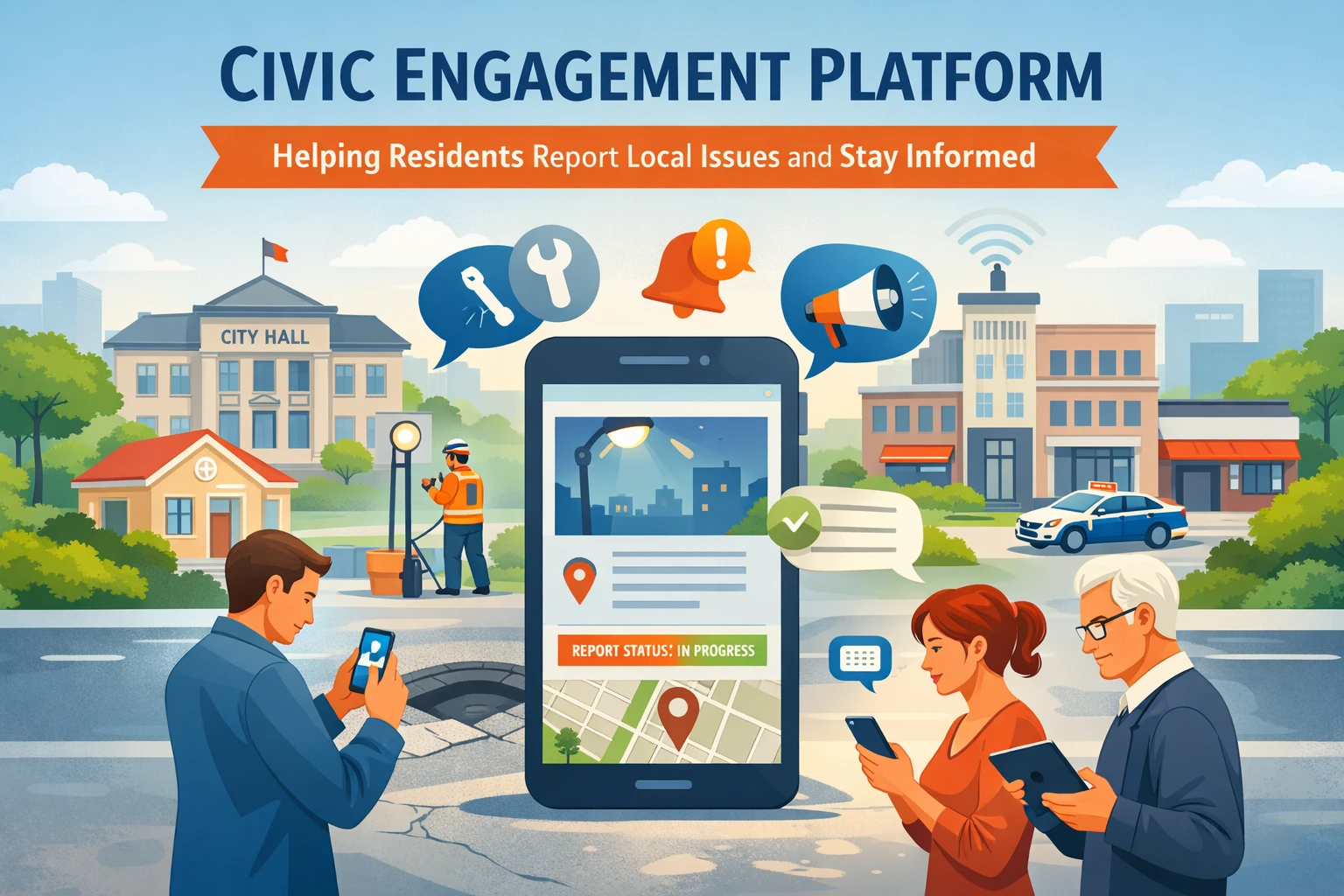 A civic engagement platform creates a direct link between residents and local government. Instead of relying only on phone calls or emails, residents can use a mobile application to submit service requests and share concerns with city departments.