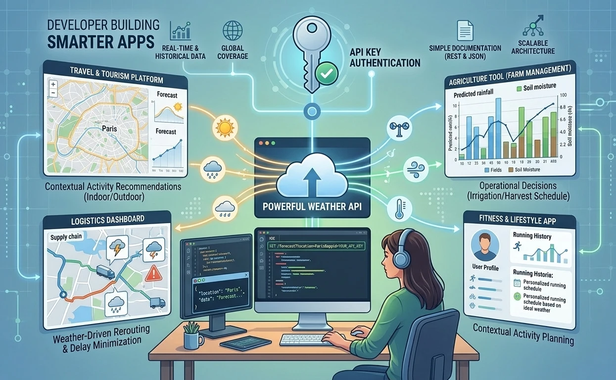 Weather data is one of the most practical data sources developers can integrate into modern applications. From travel and agriculture to logistics and lifestyle apps, accurate forecasts help users make better decisions every day.