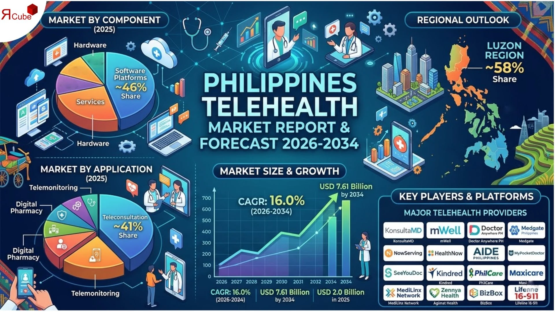 According to recent research report by The Report Cube, the size of Philippines Telehealth Market was nearly USD 2.0 Billion in 2025, and by 2034 it is expected to reach around USD 7.61 Billion with a CAGR of 16.0% over the forecast period (2026-2034).