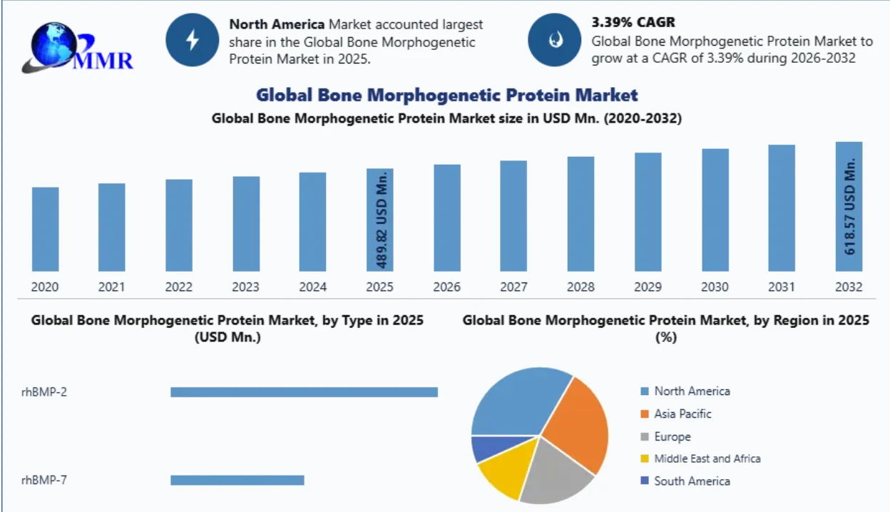 Bone Morphogenetic Protein Market size is expected to grow at a CAGR of 3.39%during the forecast period and the market size is expected to reach nearly US$ 618.57 Million by 2032.