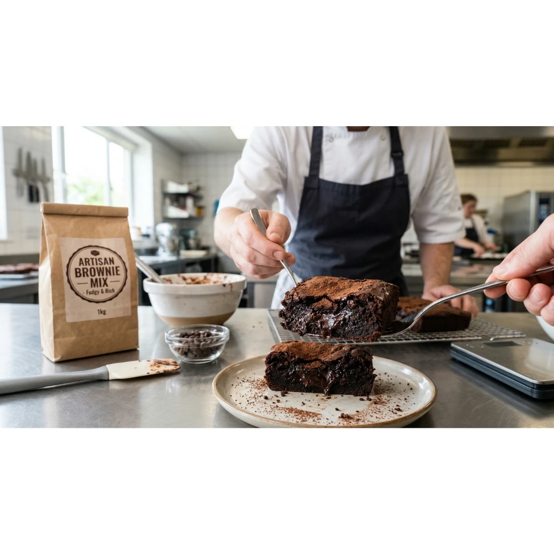Speed matters in professional settings. A pre-formulated brownie mix cuts down on weighing, sifting, and ingredient staging.