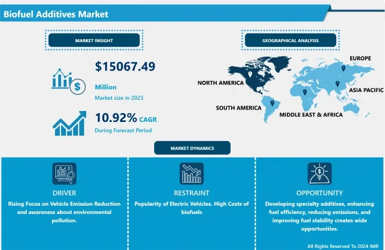 Biofuel Additives Market Size Was Valued at USD 15067.49 Million in 2023 and is Projected to Reach 38293.91 Million by 2032, Growing at a CAGR of 10.92% From 2024-2032.