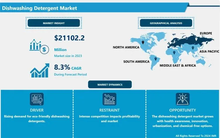Dishwashing Detergent Market Size Was Valued at USD 21102.20 Million in 2023 and is Projected to Reach USD 43249.77 Million by 2032, Growing at a CAGR of 8.3% From 2024-2032.
