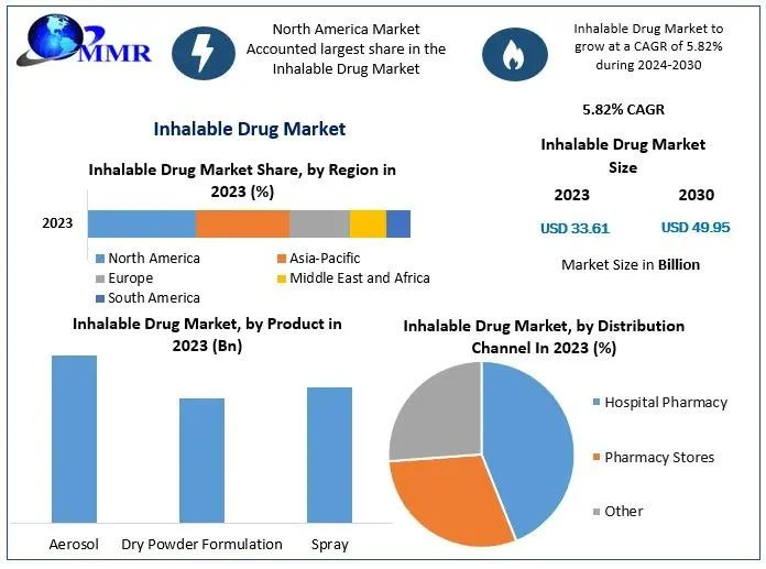 The global Inhalable Drug Market Analysis is poised for significant growth, with projections indicating an increase from $33.61 billion in 2023 to approximately $49.95 billion by 2030, reflecting a compound annual growth rate (CAGR) of 5.82% during the forecast period. Inhalable drugs, commonly referred to as "inhalants," are a class of chemicals administered through the respiratory tract, delivering therapeutic agents directly to the lungs for both local and systemic effects. This method is particularly advantageous for treating respiratory conditions, offering rapid onset of action and improved patient compliance.
