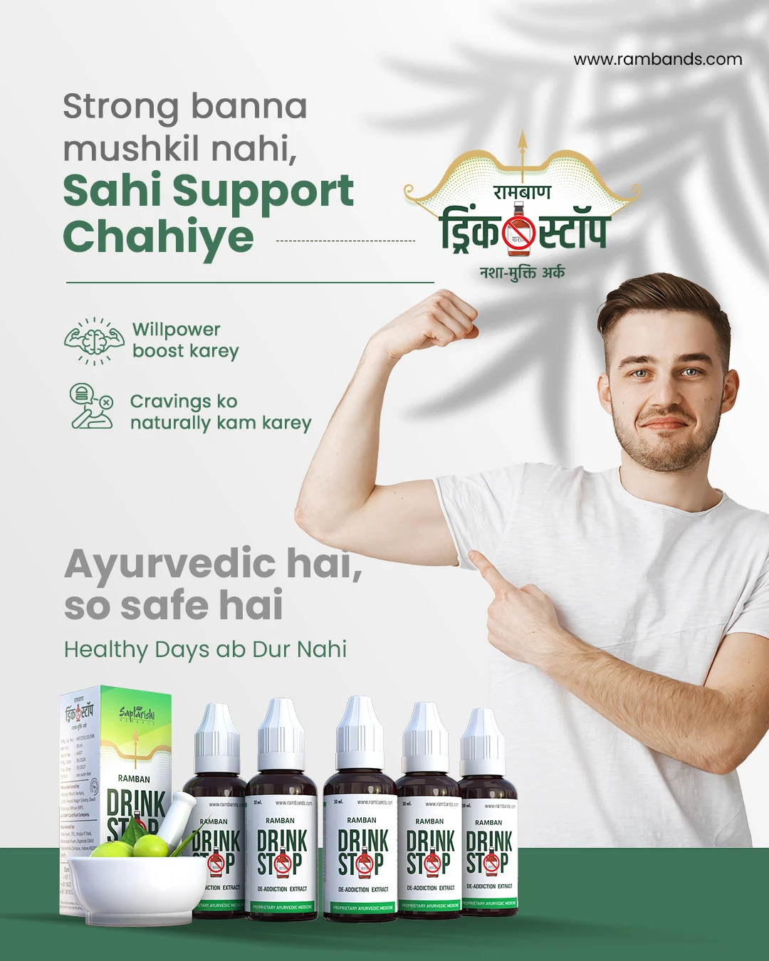 Ramban Drink Stop is a safe, natural, and effective remedy that has the healing power of Ayurveda. It is not just a medicine, but a complete support for the body and mind that makes a tough transition away from alcohol a lot easier.