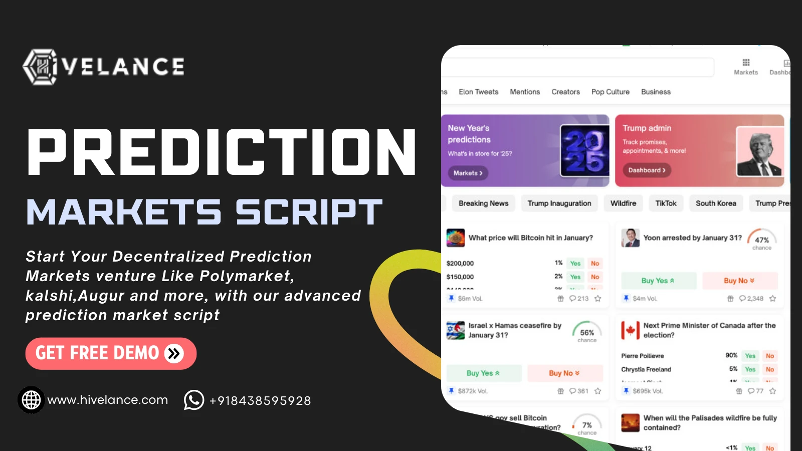 Hivelance delivers pressure-tested prediction market scripts backed by a proven track record of successful, real-world deployments. By providing full-stack ownership, the team ensures seamless integration of smart contracts, oracles, and front-end architecture without fragmented handoffs. The platforms stand out through AI-driven trend analysis and fraud detection, offering a competitive edge over static logic systems. Security is prioritized with built-in KYC and AML compliance modules, ensuring the infrastructure is both scalable and legally resilient.