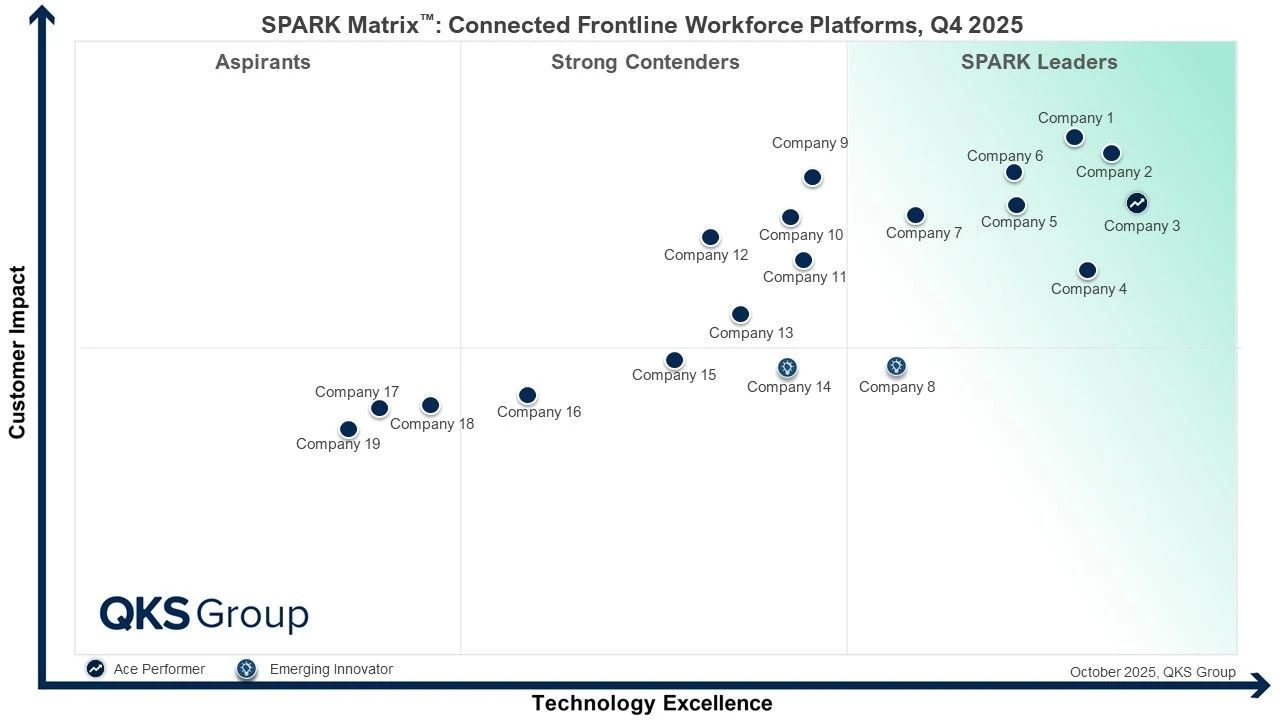 By leveraging the SPARK Matrix™, Connected Frontline Workforce platform market organizations can assess vendor strengths, identify differentiation factors, and select solutions that align with their specific operational requirements.