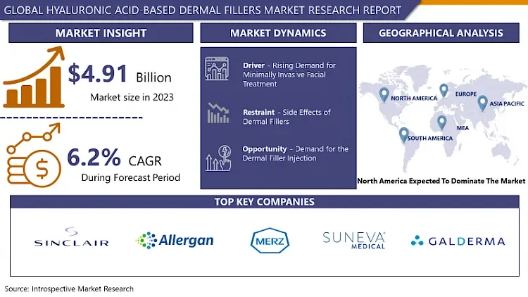Introspective Market Research has recently unveiled the Hyaluronic Acid-Based Dermal Fillers Market Study, which features an in-depth analysis. The report offers a comprehensive overview of the product or industry scope, provides detailed insights into the market outlook, and assesses the current market status (2024-2032). This Hyaluronic Acid-Based Dermal Fillers market study is segmented by key regions that are driving its growth and adoption. The market is currently gaining momentum and expanding its presence.