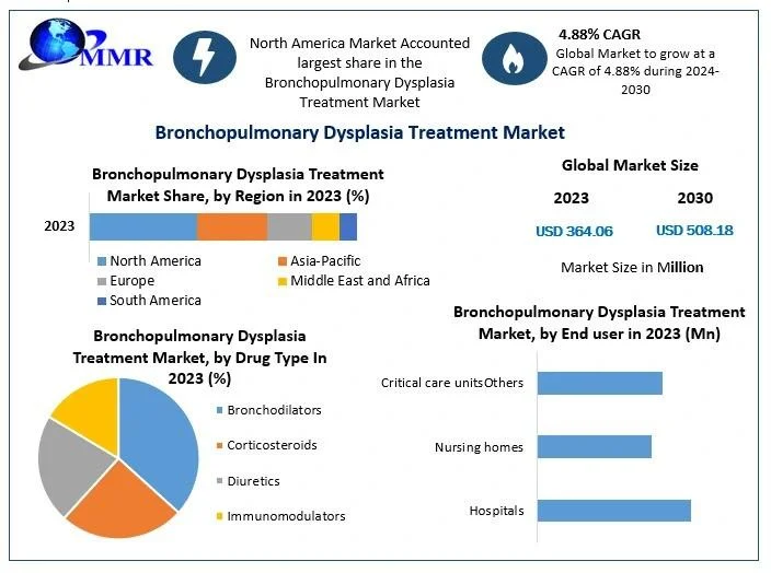 The global Bronchopulmonary Dysplasia Treatment Market Growth is anticipated to grow significantly, with projections indicating an increase from $364.06 million in 2023 to approximately $508.18 million by 2030. This growth, at a Compound Annual Growth Rate (CAGR) of 4.88%, is primarily driven by the rising incidence of premature births and advancements in neonatal care practices.