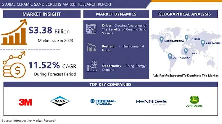 Global Ceramic Sand Screens Market Size Was Valued at USD 3.38 Billion in 2023, and is Projected to Reach USD 9.02 Billion by 2032, Growing at a CAGR of 11.52% From 2024-2032.