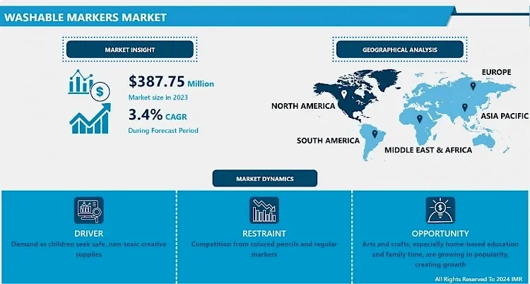 Washable Markers Market Size is Valued at USD 387.75 Million in 2023, and is Projected to Reach USD 506.66 Billion by 2032, Growing at a CAGR of 3.40% From 2024-2032.