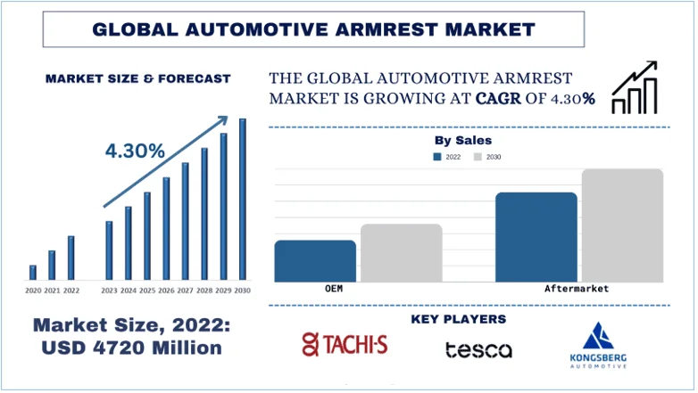 According to the UnivDatos, The automotive armrest market is expected to grow at a strong CAGR of around 4.30 % during the forecast period owing to increasing Consumers preference for comfort and convenience features in their vehicles.