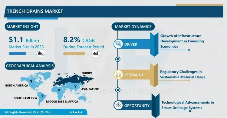 IMR is solidifying its reputation as a leading market research and consulting service provider, delivering data-driven insights that help businesses make informed strategic decisions. By focusing on detailed demand analysis, accurate market forecasts, and competitive evaluations, we equip companies with the essential tools to succeed in an increasingly competitive landscape. This comprehensive Trench Drains market analysis offers a detailed overview of the current environment and forecasts growth trends through 2032. Our expertise enables clients to stay ahead of the curve, providing actionable insights and competitive intelligence tailored to their industries.
