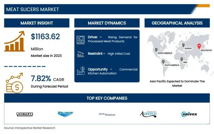 Global Meat Slicers Market Size Was Valued at USD 1163.62 Million in 2023 and is Projected to Reach USD 2291.42 Million by 2032, Growing at a CAGR of 7.82% From 2024-2032.