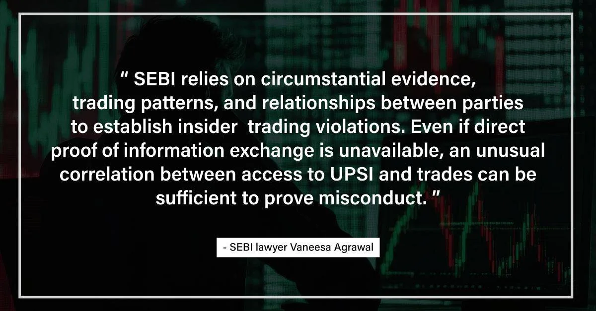According to SEBI lawyer Vaneesa Agrawal, “SEBI relies on circumstantial evidence, trading patterns, and relationships between parties to establish insider trading violations. Even if direct proof of information exchange is unavailable, an unusual correlation between access to UPSI and trades can be sufficient to prove misconduct.”
