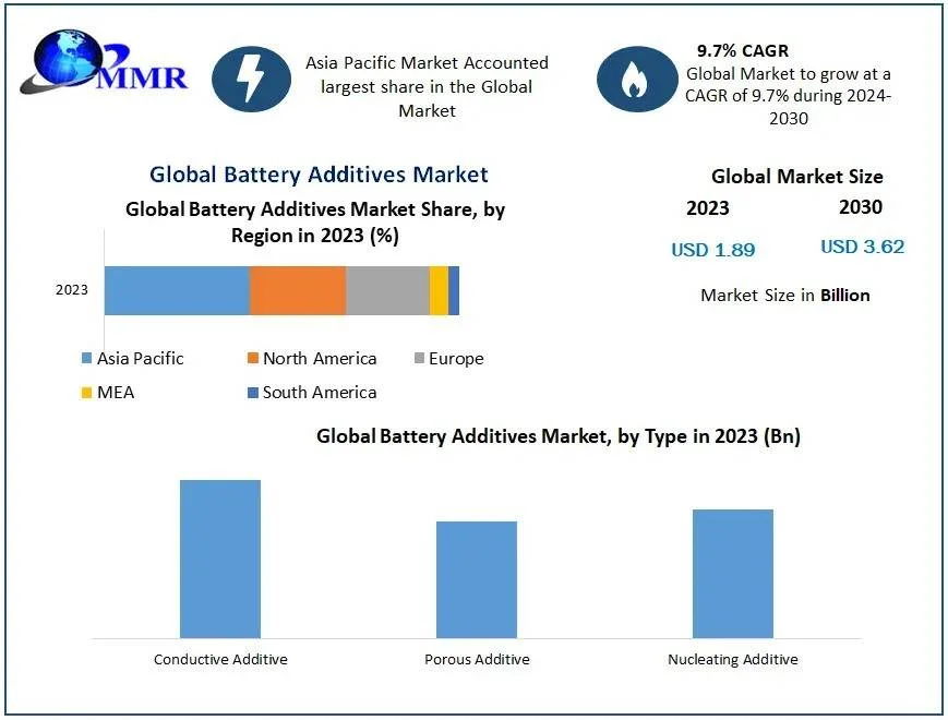 The global Battery Additives Market is on a trajectory of significant expansion, with valuations estimated at $1.89 billion in 2023 and projected to ascend to $3.62 billion by 2030. This growth represents a compound annual growth rate (CAGR) of 9.7% over the forecast period, underscoring the increasing importance of battery additives in enhancing battery performance and longevity.