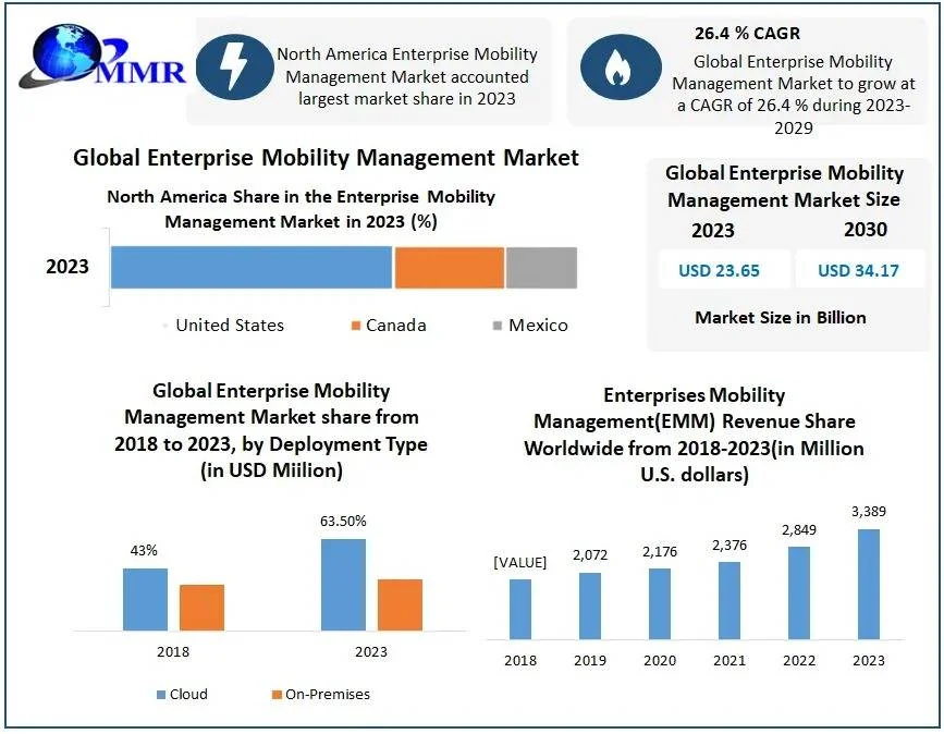 Solapur, Maharashtra, India — April 1, 2025 — The global Enterprise Mobility Management (EMM) market, valued at USD 23.65 billion in 2023, is projected to reach USD 34.17 billion by 2030, exhibiting a robust compound annual growth rate (CAGR) of 26.4% during the forecast period.