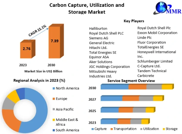 Carbon Capture, Utilization and Storage Market was valued at USD 2.76 Billion in 2023, and is expected to reach USD 7.39 Billion by 2030, exhibiting a CAGR of 15.1% during the forecast period (2024-2030)