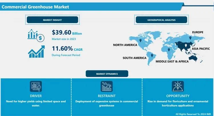 Commercial Greenhouse Market Size Was Valued at USD 39.60 Billion in 2023, and is Projected to Reach USD 106.33 Billion by 2032, Growing at a CAGR of 11.60% From 2024-2032.