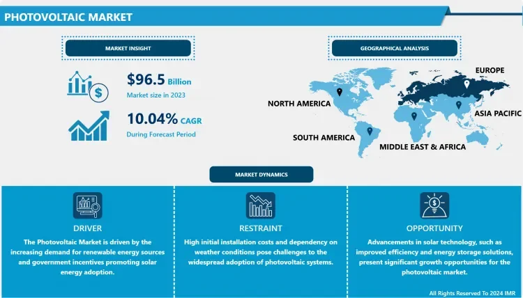 Photovoltaic Market Size is Valued at USD 96.5 Billion in 2023, and is Projected to Reach USD 228.29 Billion by 2032, Growing at a CAGR of 10.04% From 2024-2032.