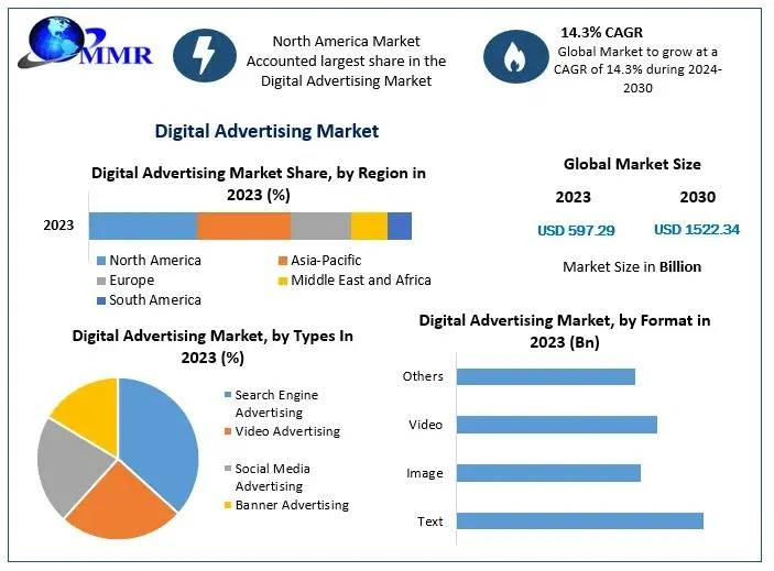 According to a recent study conducted by Maximize Market Research, the Global Digital Advertising Market was valued at USD 597.29 Billion in 2023 and is projected to grow at a robust CAGR of 14.3% from 2024 to 2030, ultimately reaching USD 1522.34 Billion by 2030.