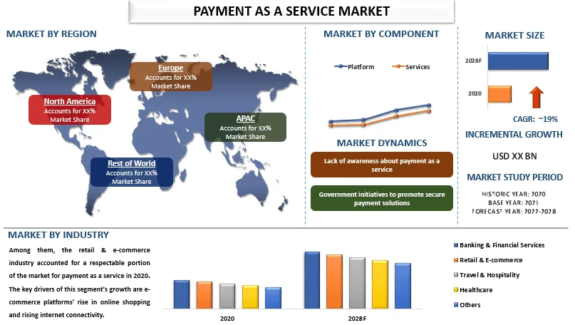 According to a new report published by UnivDatos, the Payment as a Service Market is expected to grow at a CAGR of around 19% from 2022-2028. The analysis has been segmented into Component (Platform and Services [Professional Services and Managed Services]); Industry (Banking & Financial Services, Retail & E-Commerce, Travel & Hospitality, Healthcare, and Others); Region/Country.