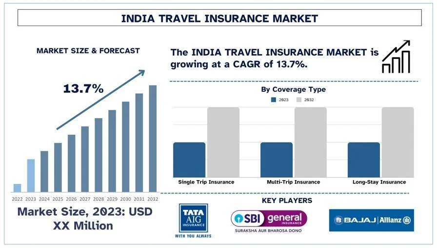 According to the Univdatos analysis, increasing travel activity, rising awareness and education, and regulatory support from the government will drive the scenario of the Indian travel insurance market. As per their “India Travel Insurance Market” report, the market was valued at ~USD million in 2023, growing at a CAGR of about 13.7% during the forecast period from 2024-2032 to reach USD million by 2032.