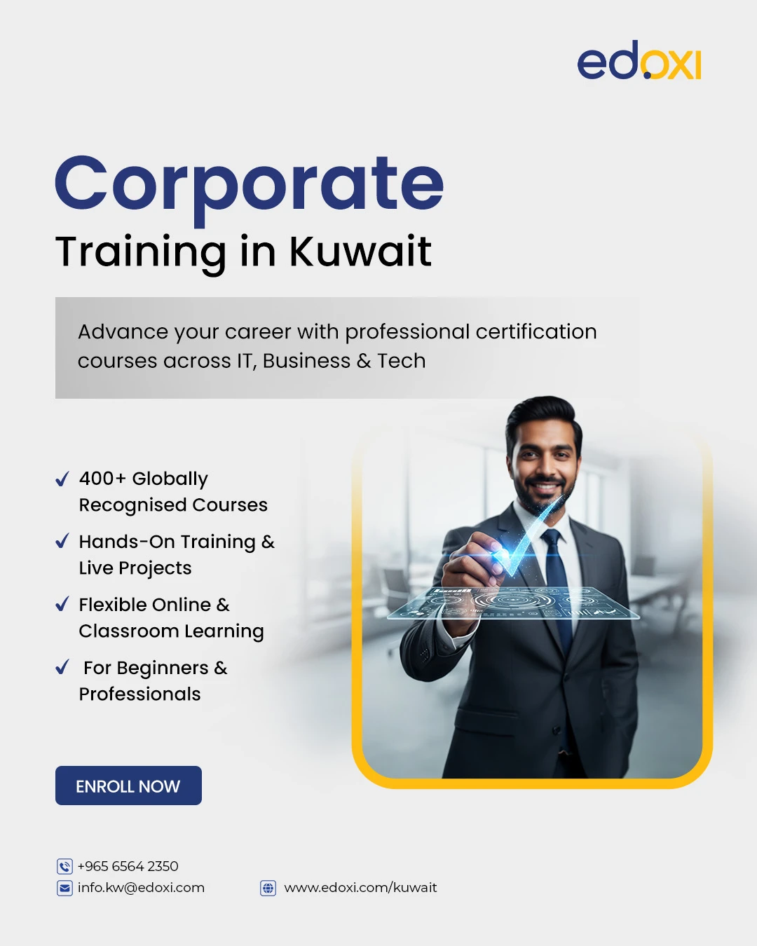 Address Edoxi Training Institute B8 Tower, Ahmad Al Jaber St Kuwait City , Kuwait. Ph No : 96565642350 Mail Id : info.kw@edoxi.com