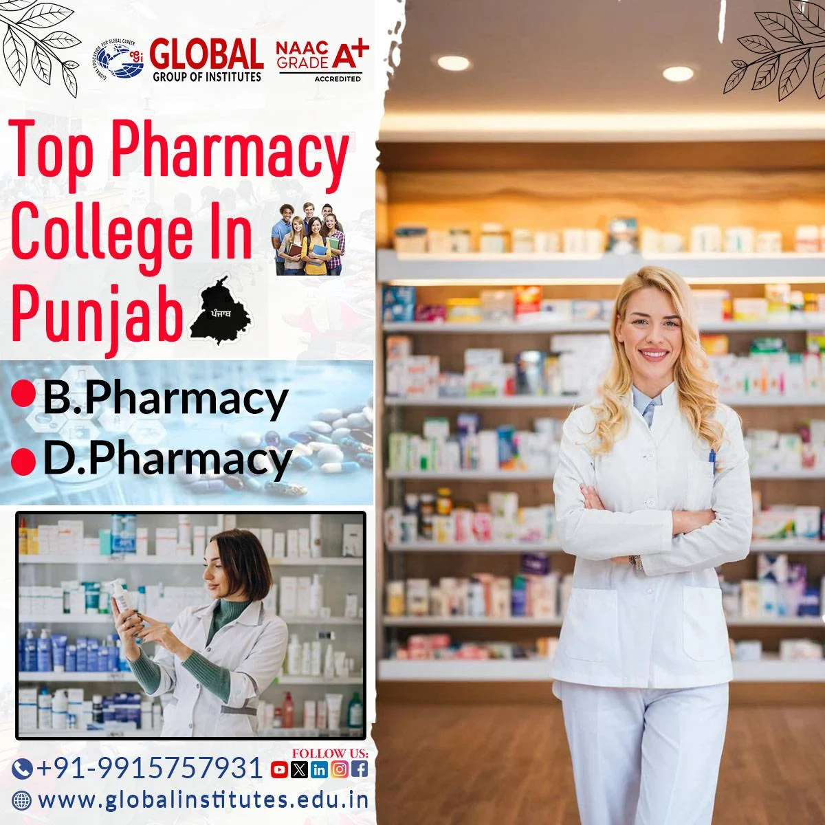 Visit our site - https://www.globalinstitutes.edu.in/pharmacy/Top Pharmacy College in Punjab Call at - 9915757931. Address - Global Group of Institutes, 11km stone, Amritsar, Punjab Visit our site - https://www.globalinstitutes.edu.in/pharmacy/0 Comments 0 Shares - Global Institutes stands as the epitome of excellence in Best pharmacy College in Punjab, fostering innovation, research, and professional development. Our commitment to quality education ensures graduates thrive in the dynamic pharmaceutical industry. Call us at - 9915757931.