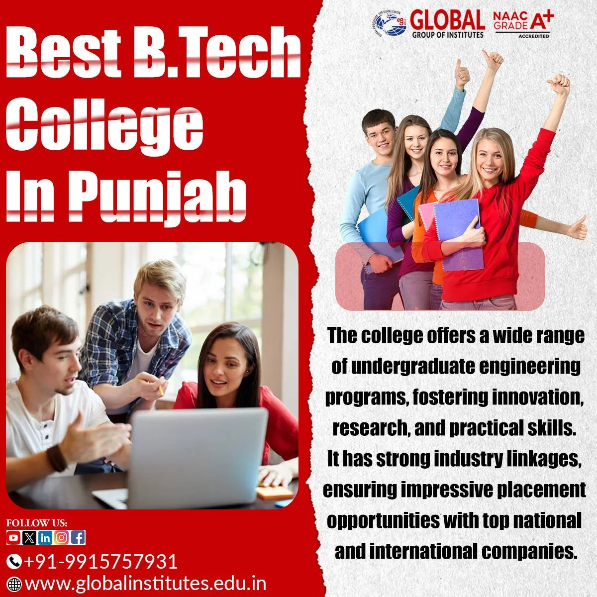 Visit at - https://www.globalinstitutes.edu.in/gimet/Best B.Tech College in Punjab Call at - 9915757933 Visit at - https://www.globalinstitutes.edu.in/gimet/0 Comments 0 Shares - Global Group of Institutes is one of the Top Engineering College in Punjab. Call at - 9915757932