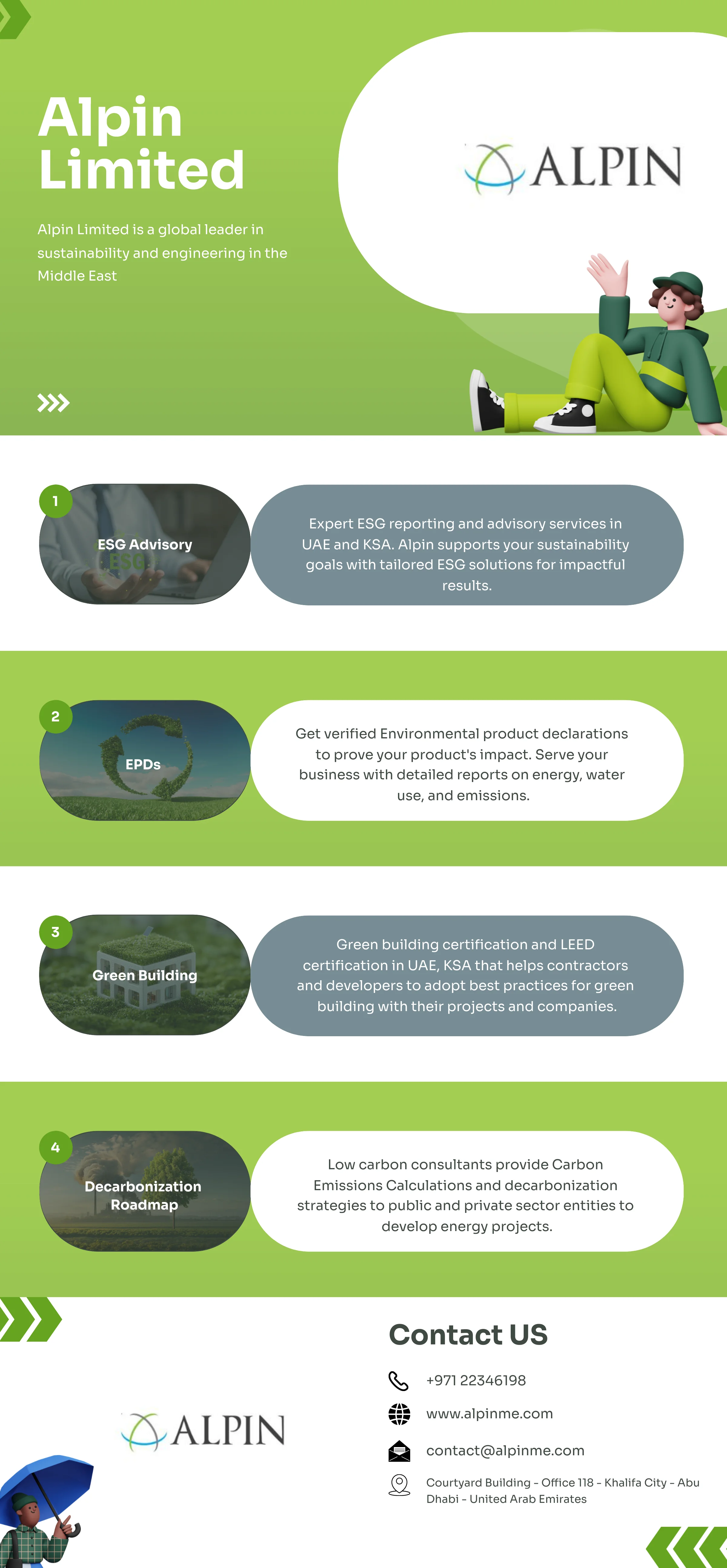 https://www.alpinme.com/solutions/green-building-certification/Drive positive environmental impact with expert services in ESG advisory, Environmental Product Declarations, green building certification, and decarbonization strategies. We help businesses adopt sustainable practices, reduce emissions, and align with international green standards for long-term success. https://www.alpinme.com/solutions/green-building-certification/0 Comments 0 Shares - Boost your online presence with expert website design, reliable web hosting, SEO, and digital marketing services in Abu Dhabi. Our team helps businesses grow with creative designs, strong online visibility, and effective marketing strategies tailored for success across the UAE.