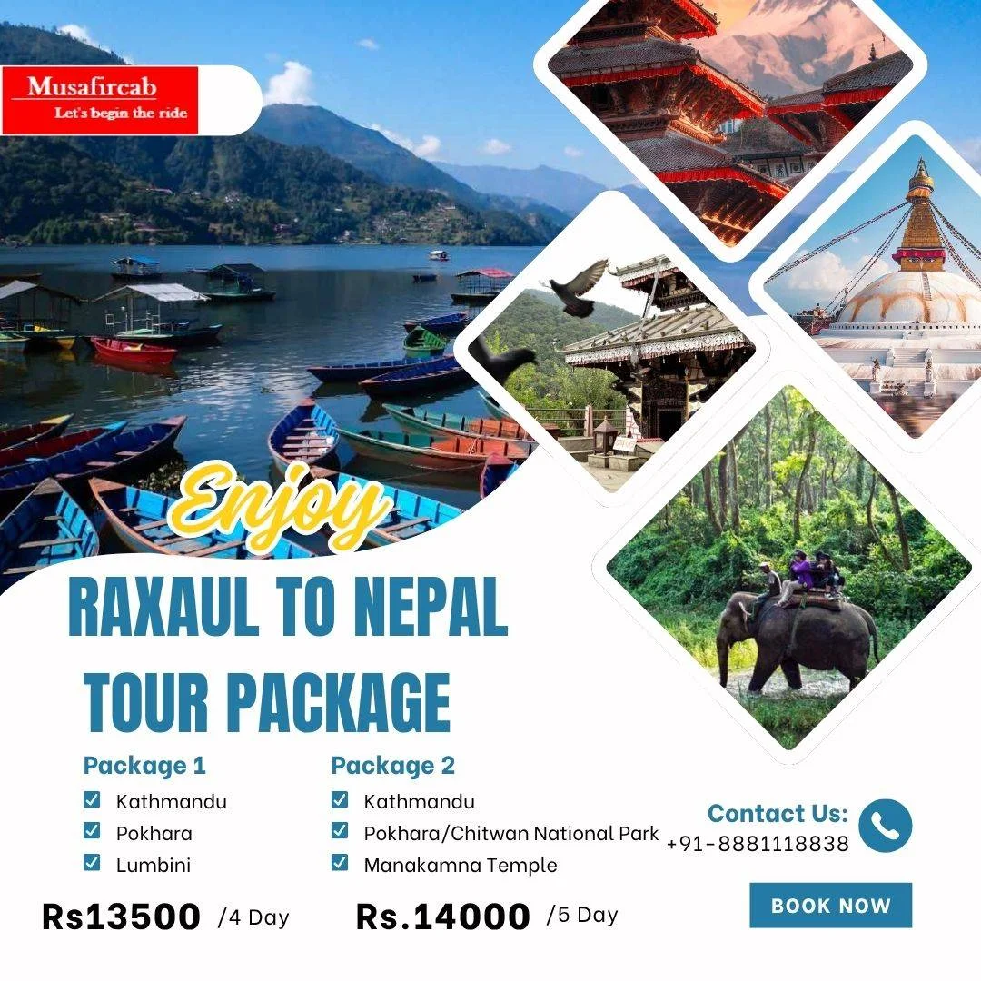 Raxaul to Nepal Tour Package by Musafircab Discover Nepal’s beauty with a comfortable and hassle-free travel experience from Raxaul. Musafircab provides well-maintained cabs, professional drivers, secure travel, and full trip assistance. Whether you plan to visit Kathmandu, Pokhara, Janakpur, Chitwan, or other destinations, we arrange your entire journey, including pickup, hotel stay options, sightseeing, and return. Services Provided: • Raxaul pickup & drop • Clean & comfortable cabs (Sedan, SUV, Tempo Traveller) • Experienced & polite drivers • Hotel booking assistance • Sightseeing & guided travel support • 24/7 customer help How to Book: Call us and share your travel date, number of travelers, and destination preferences. Our team will provide you with the best package options and confirm your trip instantly. Call Now: +91-8881118838 Visit: https://www.musafircab.com/page/raxaul-to-nepal-tour-packages