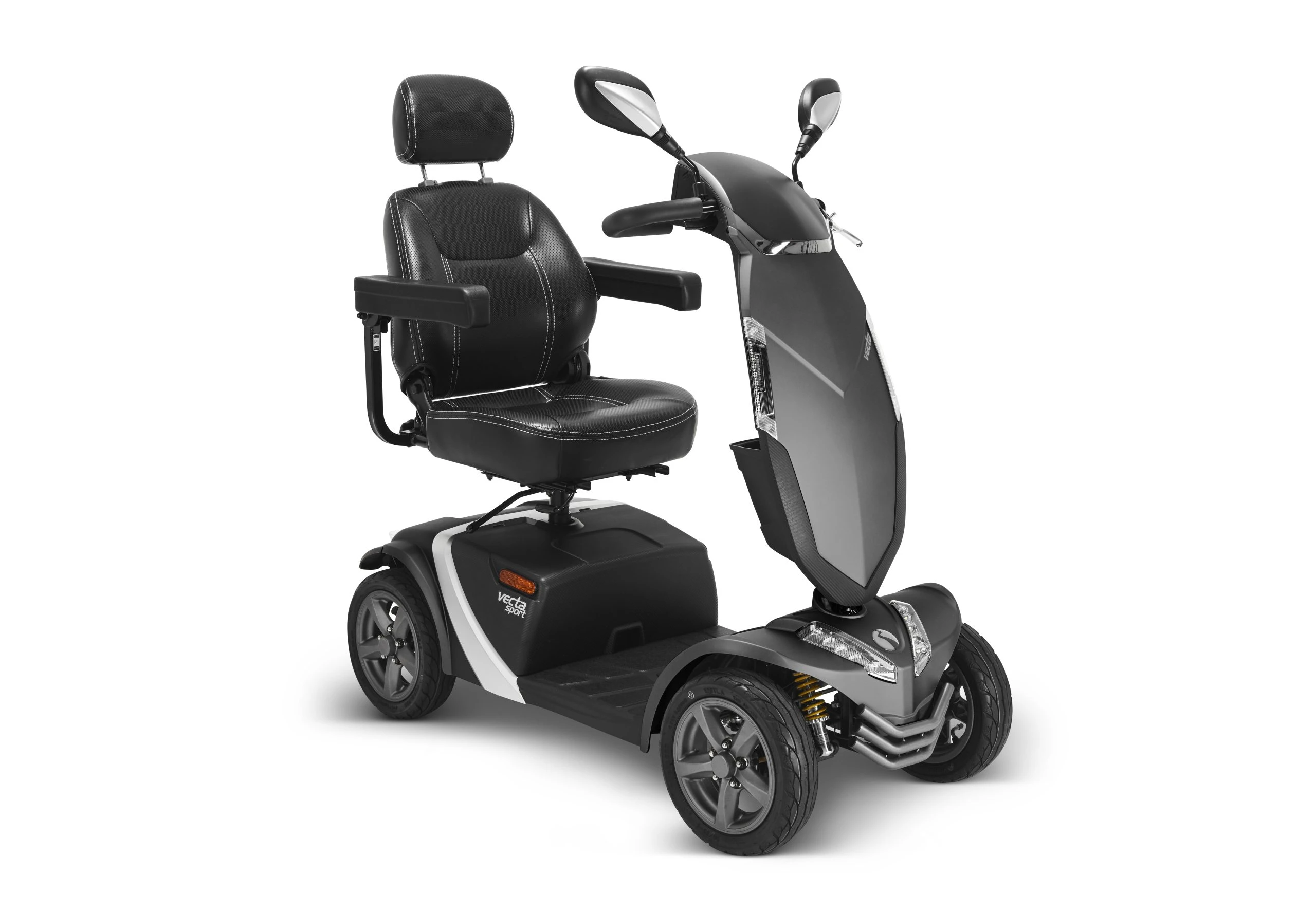 With a top speed of 8 mph and an impressive range of up to 27 miles (44 km), the Vecta Sport is perfect for longer journeys, shopping trips, and everyday independence. The innovative RunOn puncture-resistant pneumatic tyres provide excellent grip and comfort across uneven surfaces, while the full suspension system ensures a controlled and enjoyable ride.