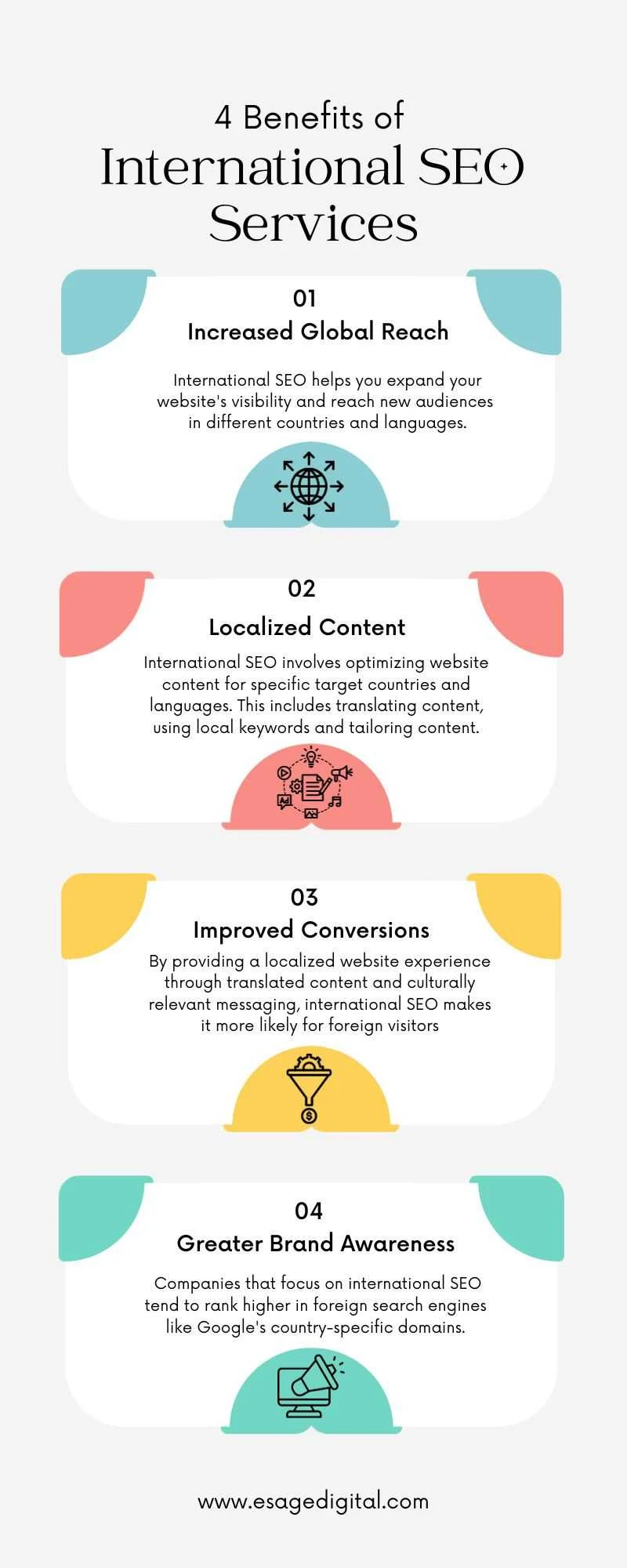4 Benefits of International SEO Services Ready to grow globally? With ESage Digital's international SEO services, the world is your marketplace. Our experts make your website multilingual, opening doors to new customers and sales worldwide. @ https://esagedigital.com/international-seo/