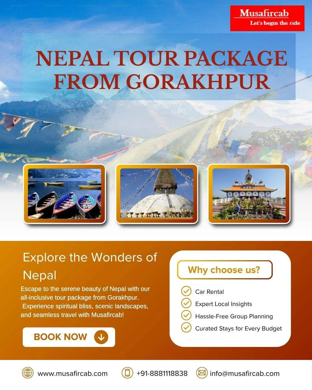 Ayodhya to Nepal Tour Package – A Spiritual & Scenic Journey Awaits You! Are you ready to explore the divine connection between two sacred lands – Ayodhya, the birthplace of Lord Ram, and Nepal, the land of Himalayas, temples, and spiritual peace? Musafircab brings you a well-curated Ayodhya to Nepal Tour Package, offering a perfect blend of spiritual pilgrimage, cultural discovery, and natural beauty. Whether you're a devotee, a nature lover, or simply seeking a refreshing getaway, this tour has it all. π What You’ll Experience: πΉ Lumbini – The birthplace of Lord Buddha and a UNESCO World Heritage Site πΉ Pokhara – Breathtaking lakes, serene mountains, and adventure sports πΉ Kathmandu – A city rich in heritage, temples, and vibrant local life πΉ Nagarkot – A peaceful hill station known for sunrise views of the Himalayas π From Ayodhya to Nepal – We Take Care of Everything: βοΈ Comfortable AC Cab Travel βοΈ Hotel Accommodation with Delicious Meals βοΈ Sightseeing by Private Vehicle βοΈ Assistance at the India-Nepal Border βοΈ Friendly Driver & Guided Support Throughout π― Customizable Itinerary Options Available Travel with your family, friends, or in a group — we personalize your tour based on your needs and budget π Book Now – Limited Slots Available! Call/WhatsApp: +91-8881118838 π§ Email: info@musafircab.com π Visit Us: https://www.musafircab.com/page/ayodhya-to-nepal-tour-package Experience a journey that connects devotion, nature, and culture – only with Musafircab's Ayodhya to Nepal Tour Package.