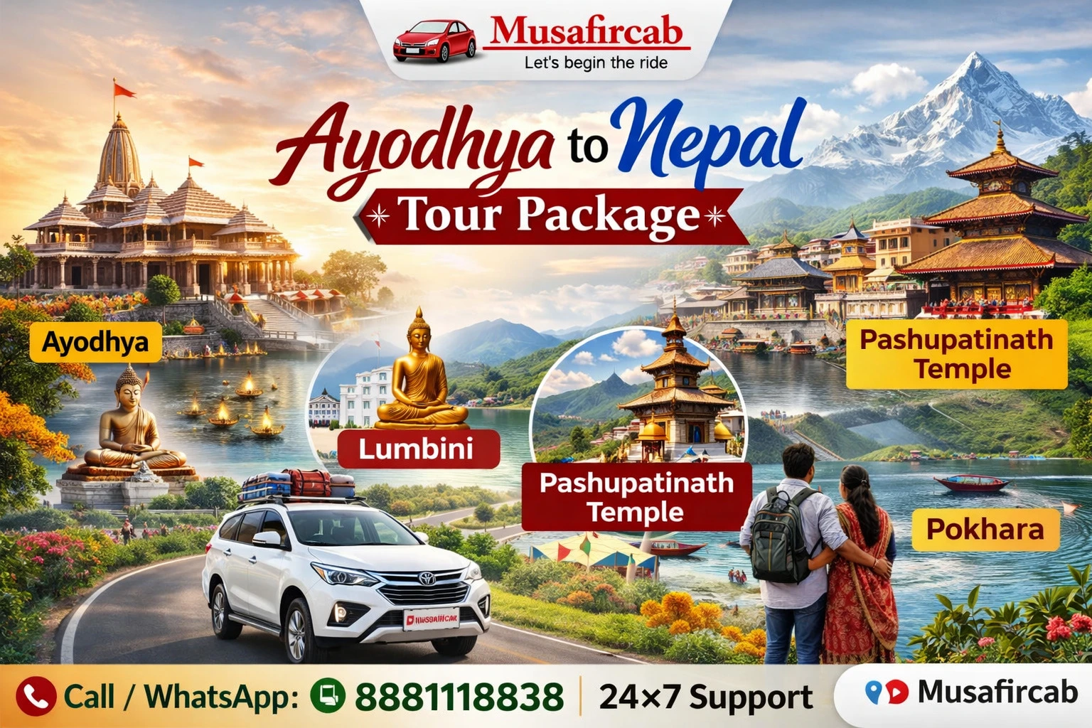 Begin your divine journey from Ayodhya to the spiritual land of Nepal with Musafircab.