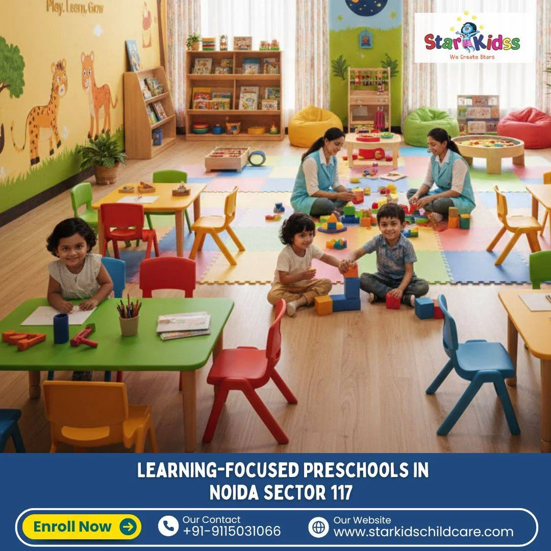 Top preschools in Noida 117 focus on nurturing early childhood development and foundational learning skills. Starkidss Preschool & Daycare provides a safe and stimulating environment with trained educators and modern facilities. The preschool emphasizes creativity, social skills, and cognitive development through play-based learning. With structured programs, personalized attention, and child-focused care, Starkidss Preschool & Daycare supports holistic growth and prepares children for future academic success.